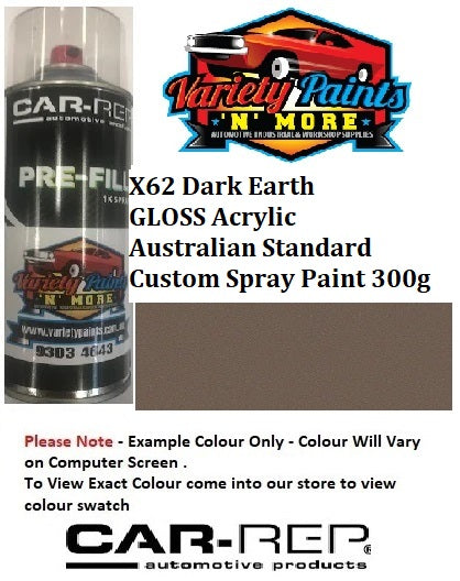 X62 Dark Earth GLOSS ACRYLIC Australian Standard Custom Spray Paint 300 Grams