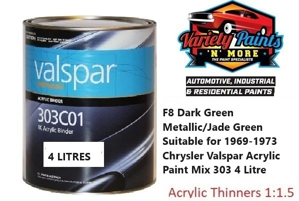 F8 Dark Green Metallic/Jade Green Suitable for 1969-1973 Chrysler Valspar Acrylic Paint Mix 303 4 Litre