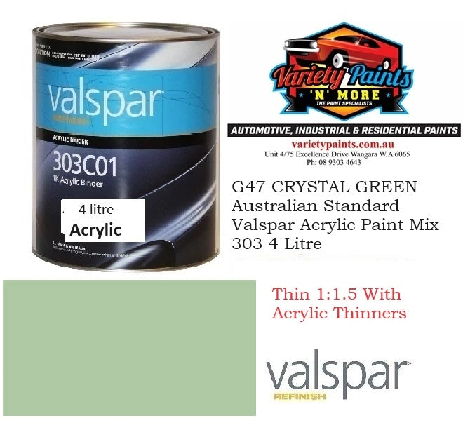 G47 CRYSTAL GREEN Australian Standard Valspar Gloss Acrylic Paint Mix 303 4 Litre