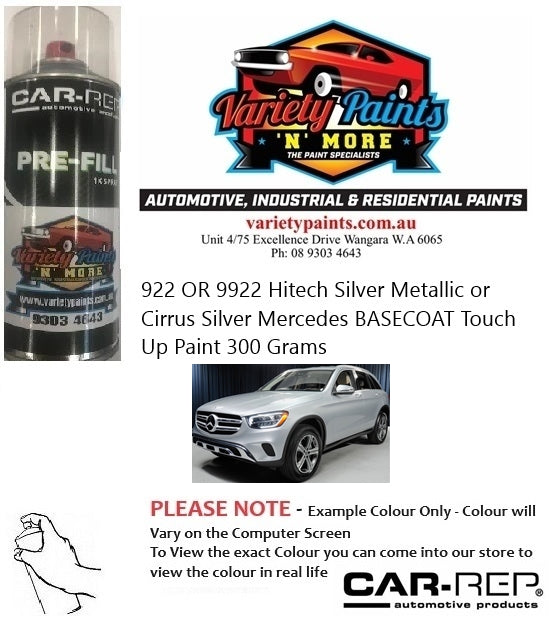 922 OR 9922 Hitech Silver Metallic or Cirrus Silver Mercedes BASECOAT Touch Up Paint 300 Grams